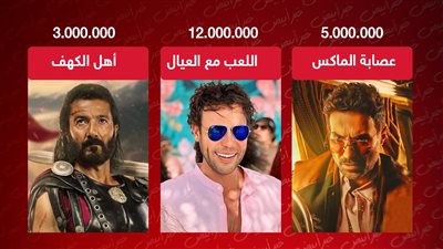 أما فيلم عصابة الماكس، فحقق أمس إيرادات بلغت مليون و703 ألف جنيه مصري، لتبلغ إيراداته 7 ملايين و506 ألف جنيه خلال 6 أيام بدور العرض السينمائي.