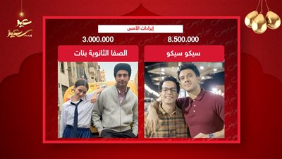 وجاء في المركز الثاني فيلم الصفا الثانوية بنات، بطولة على ربيع، حيث حقق أمس 3 ملايين و305 آلاف جنيه، ليقفز بإجمالي إيراداته في 4 أيام عرض إلى 10.3 ملايين جنيه، بينما جاء في المركز الثالث فيلم نجوم الساحل بطولة أحمد داش الذي حصد أمس مليون و511 ألف جنيه، لتصل إجمالي إيراداته إلى 4 ملايين و108 آلاف جنيه.