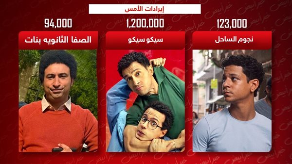 إيرادات الأمس .. سيكو سيكو يحافظ على الصدارة والصفا الثانوية ونجوم الساحل يجمعان 200 ألف