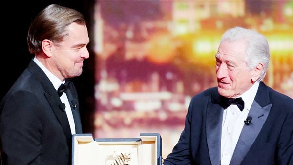 روبرت دي نيرو يتسلم السعفة الذهبية من ليوناردو دي كابريو على مسرح كان السينمائي