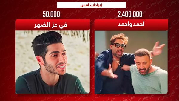 أحمد وأحمد يتصدر بـ 2 مليون ونصف المليون وفى عز الضهر يكتفي بـ 50 ألف