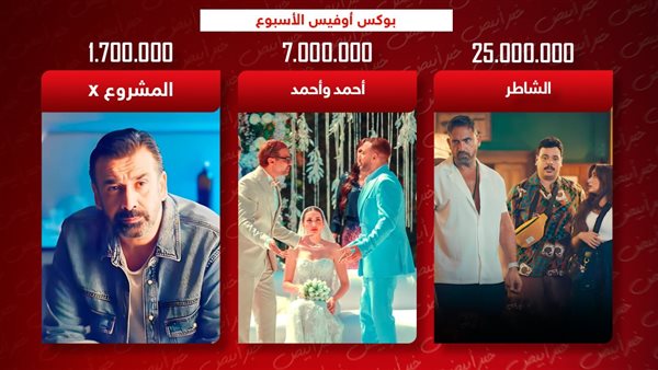 بوكس أوفيس الأسبوع .. الشاطر يتصدر وأحمد وأحمد الثاني والمشروع X يكتفي بمليون و700 ألف