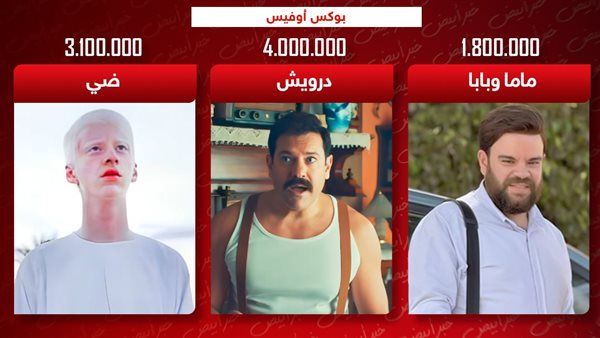 بوكس أوفيس.. درويش يتصدر بـ 4 ملايين وضي وماما وبابا يجمعان 4 ملايين و900 ألف جنيه