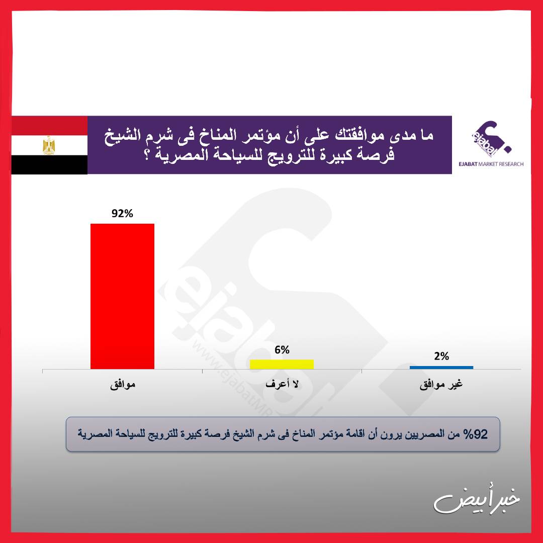 أحدث استطلاع رأي لشركة إجابات : 79% من المصريين يرون أن مؤتمر المناخ رفع قيمة ومكانة مصر عالمياً