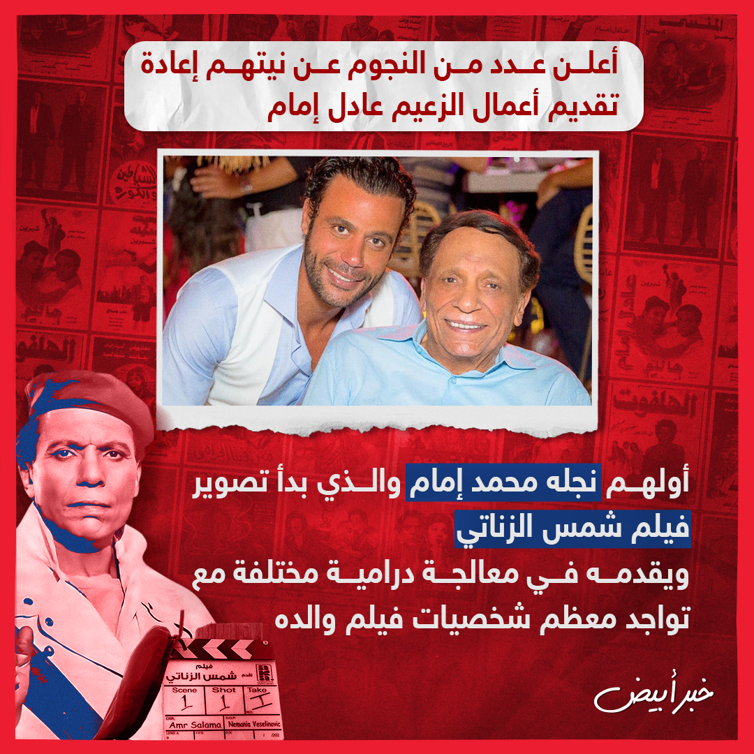 إنفوجراف خبر أبيض .. محمد إمام وكريم محمود عبدالعزيز يعيدان أفلام الزعيم عادل إمام